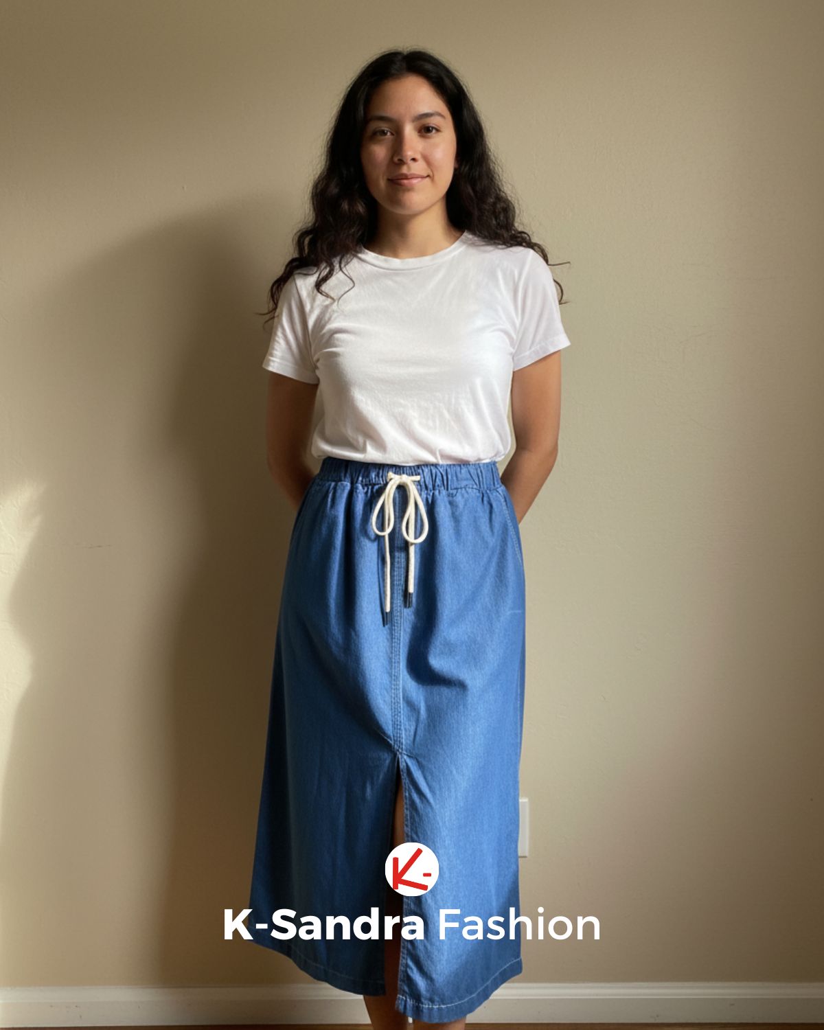 ✨ Falda de mezclilla larga para mujer con abertura frontal – K-Sandra Fashion ✨
