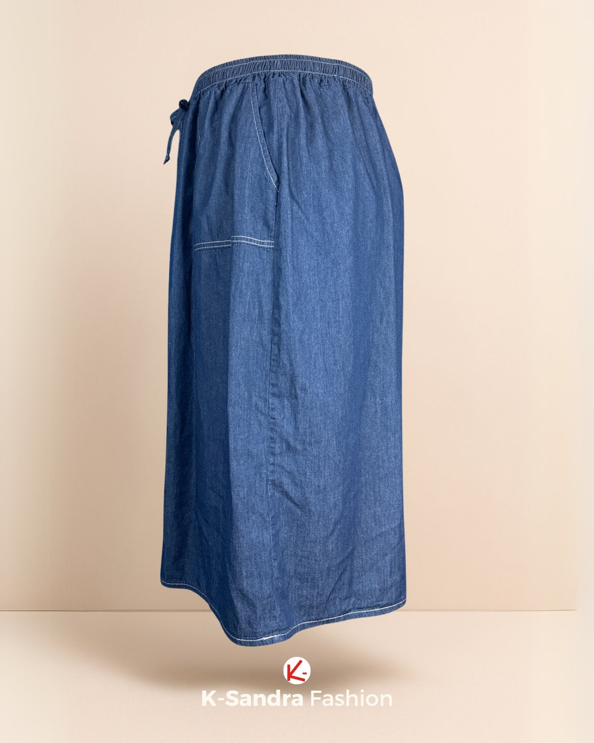 Una prenda clásica y versátil que nunca pasa de moda 💙. Esta falda de mezclilla azul es ideal para mujeres que buscan comodidad y estilo en su día a día. Su diseño con botones al frente y cintura ajustable la hace práctica, fresca y fácil de combinar con todo tipo de blusas y calzado.