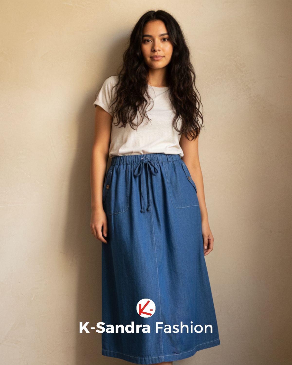 ✨ Falda de mezclilla larga para mujer con bolsas laterales – K-Sandra Fashion ✨